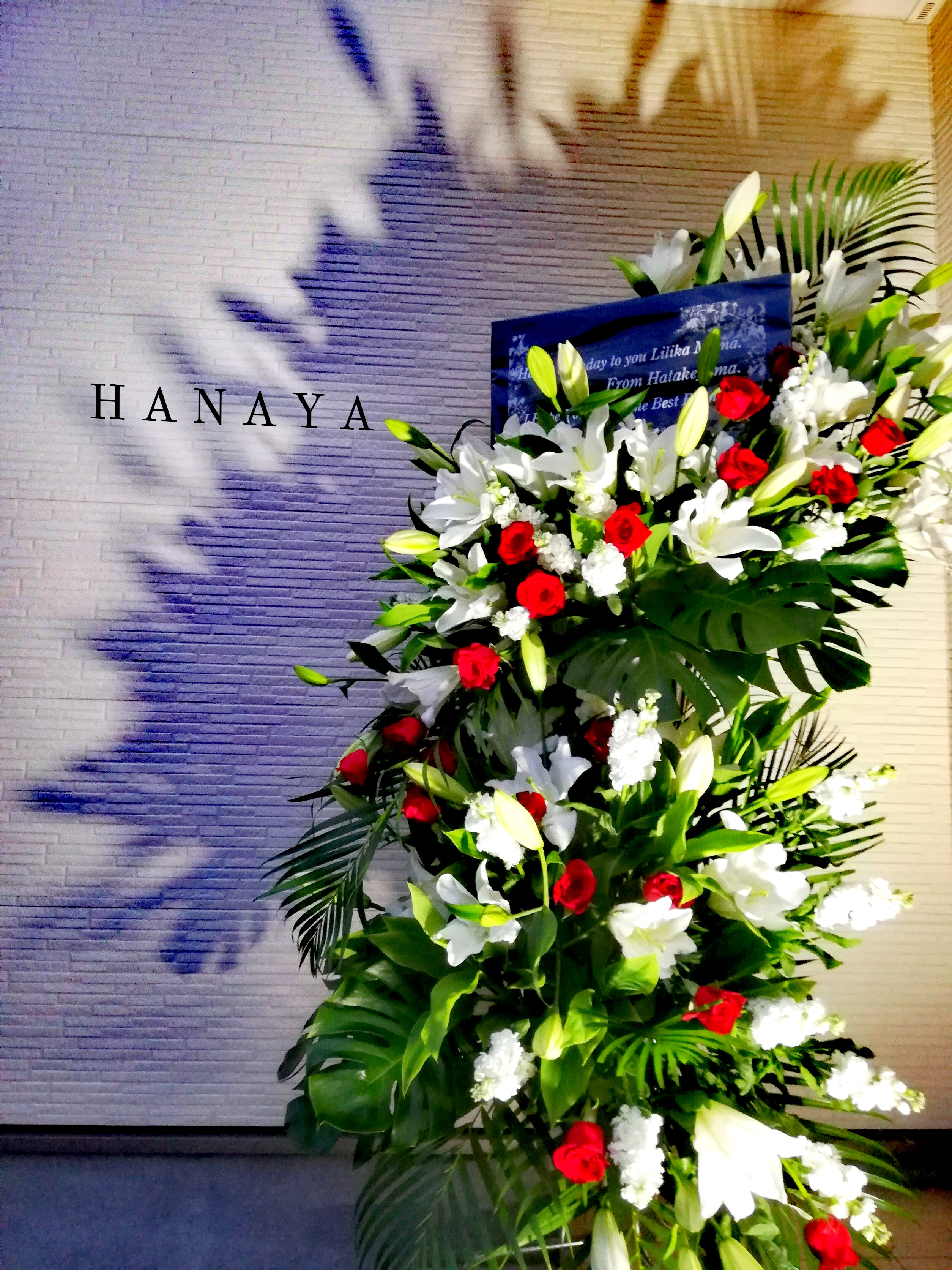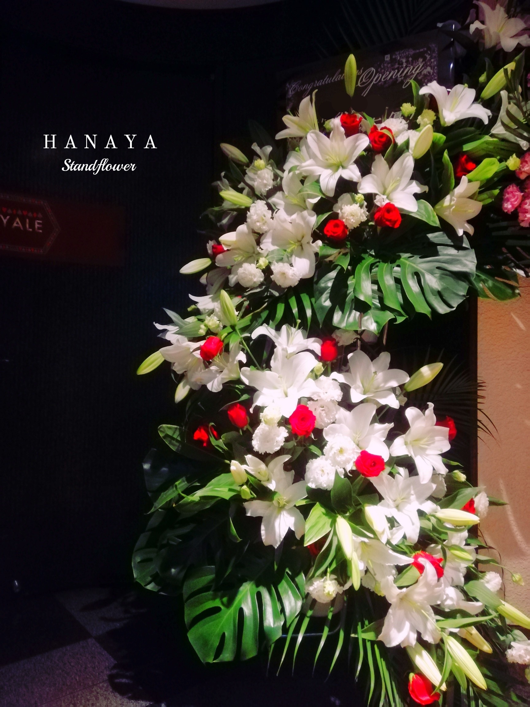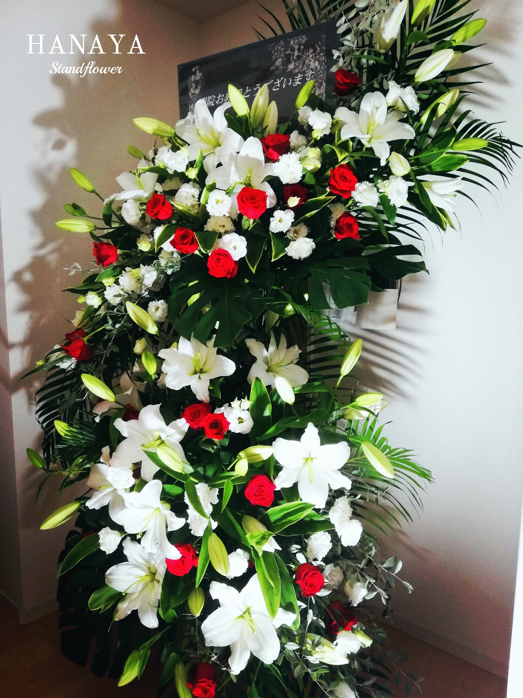 フラワースタンド 当店で通常御提供させて頂いている、スタンドスタイルです。 ホワイト&グリーンの一番人気色。 爽やかな色彩ですがデザインされたスタンドの為、御祝の席などにも十分な華やかさを演出致します。 もちろん、ピンク系・赤系・青系・紫系・ミックス系など様々な色の御指定可能です。 指定色によっては、表示価格を上回るものがございます。 お気軽にお問い合わせ下さいませ。