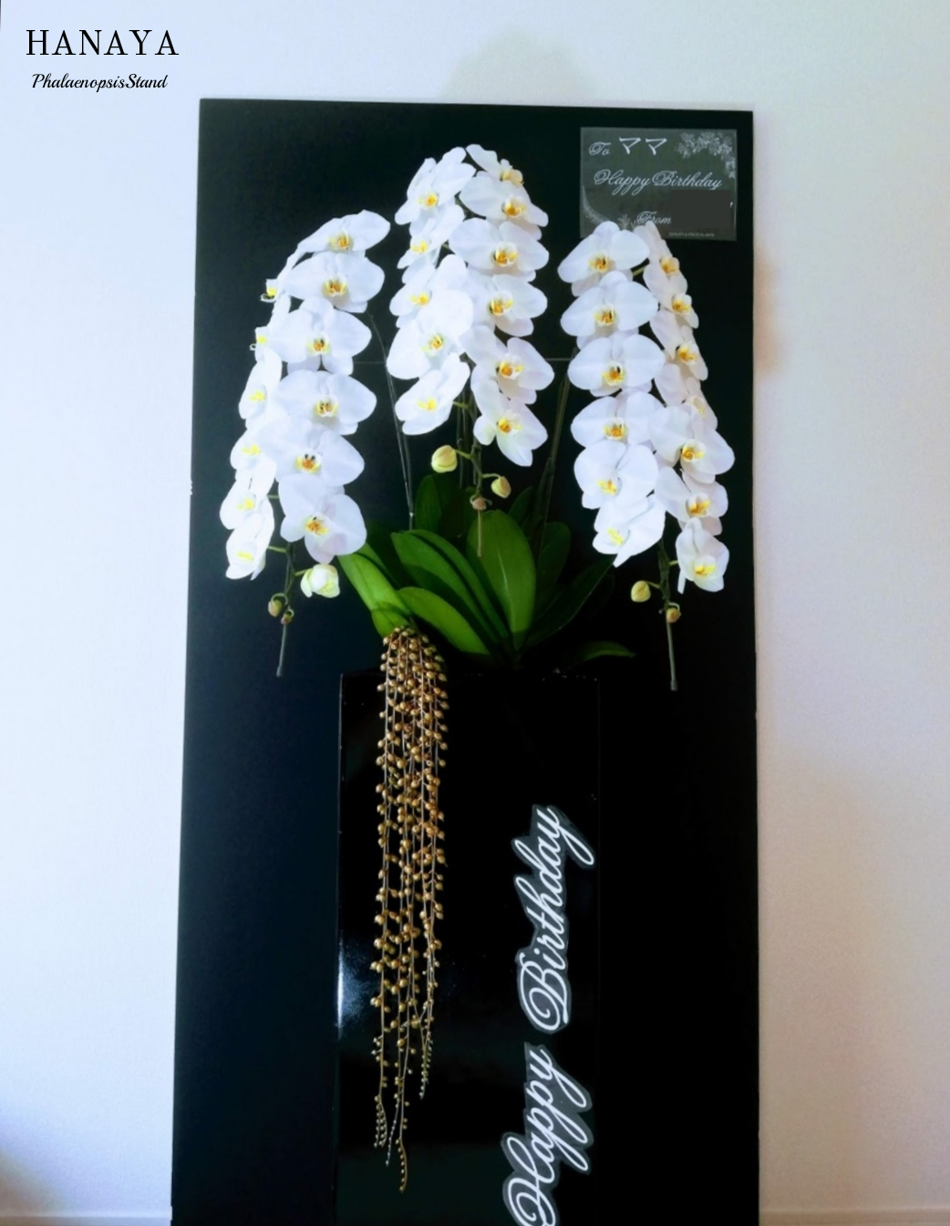 胡蝶蘭スタンド 一際目を引く花家shinyoshiの胡蝶蘭を、スタンドタイプに仕立てました。 法人様にもオススメの胡蝶蘭スタンドでございます。 目立つ事は勿論の事、シックで洗練された胡蝶蘭スタンドは場の空気を壊すことなく素晴らしい存在感を放ちます。 3本立、5本立、10本立。色合いも様々なお色に対応可能でございます。 お気軽に御問い合わせ下さいませ。 胡蝶蘭スタンドは、花家shinyoshiオリジナル商品でございます。