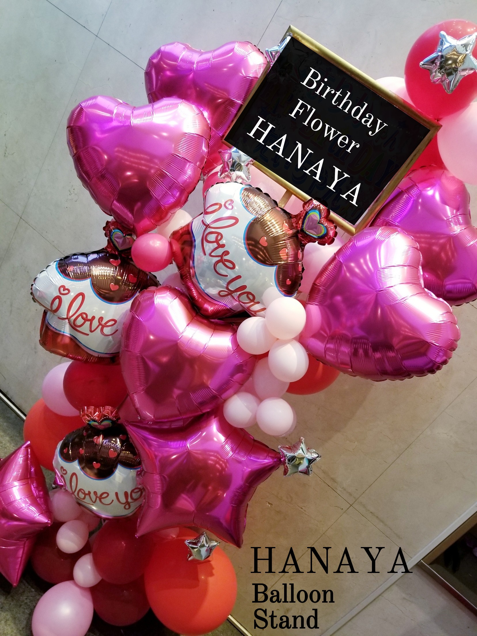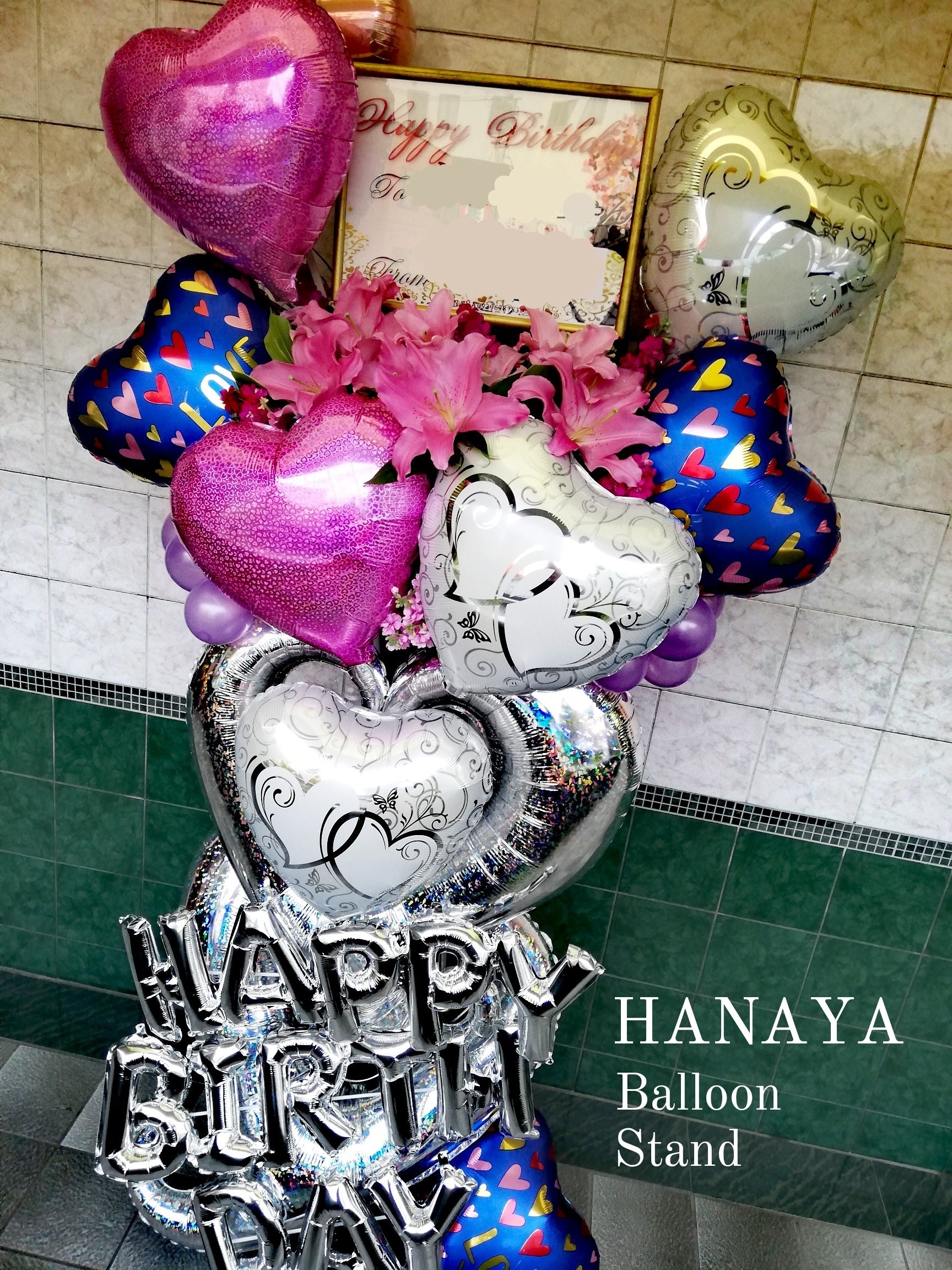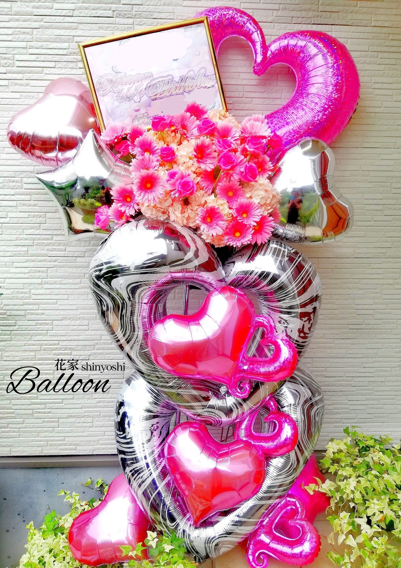 バルーンスタンド ~フラワーミックス オーダーメイド~ ビックフラワーやストーンガーベラやダブルバルーンや天使のバルーンなど細かい所にまでこだわったスタンド。 お客様の想い+当店フローリストの提案をミックスして創作致します。 お客様の想いをどんどん膨らませ、完全なバルーンスタンドを御提案させて頂きます。 お気軽にお問い合わせ下さいませ。