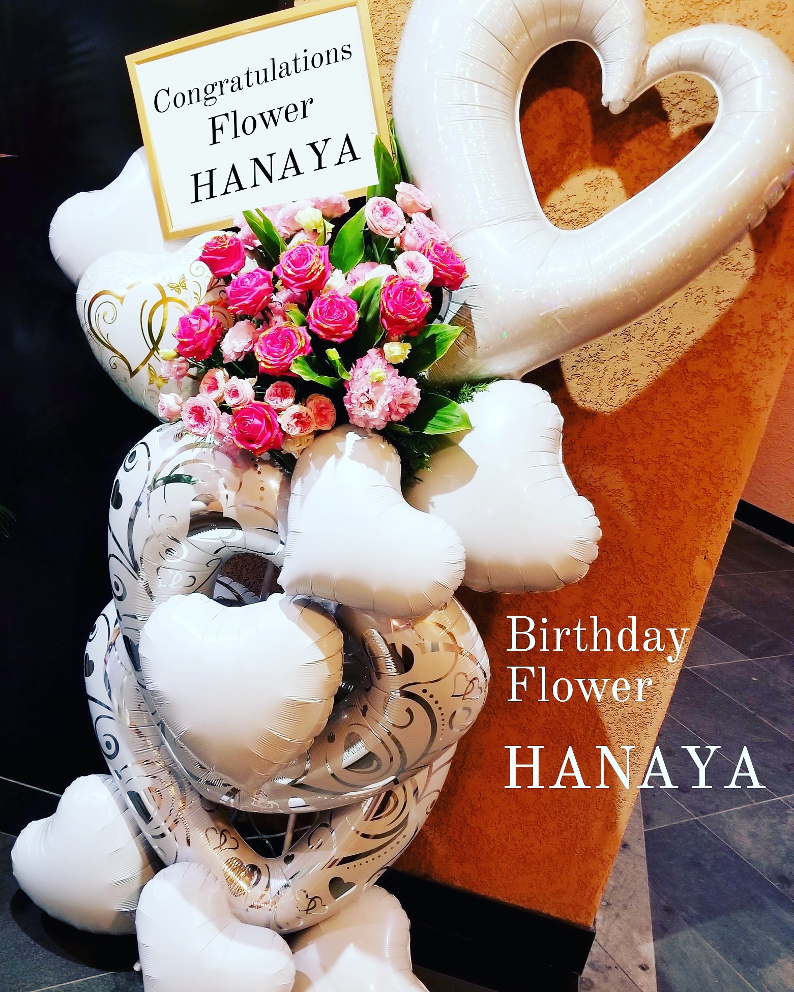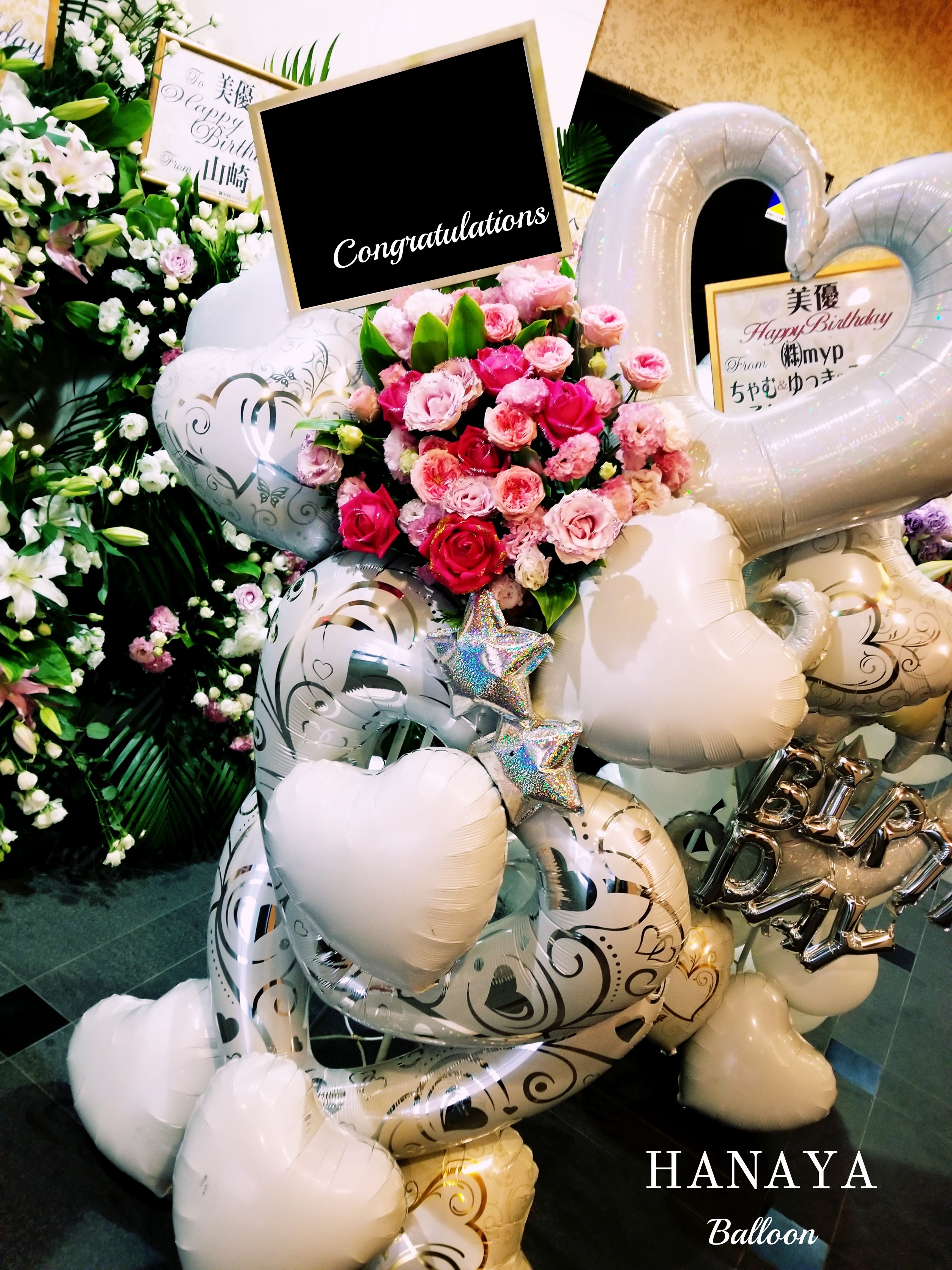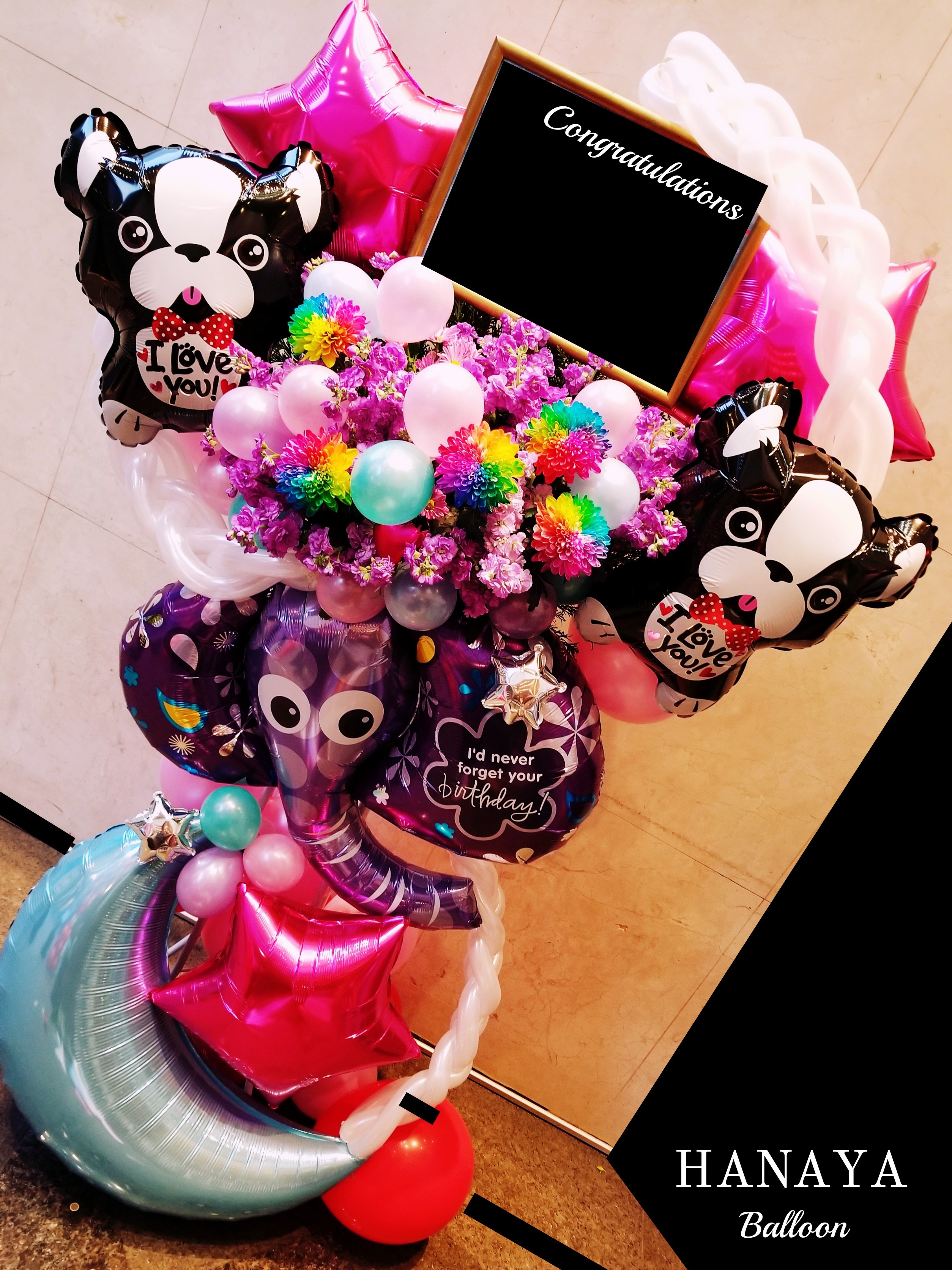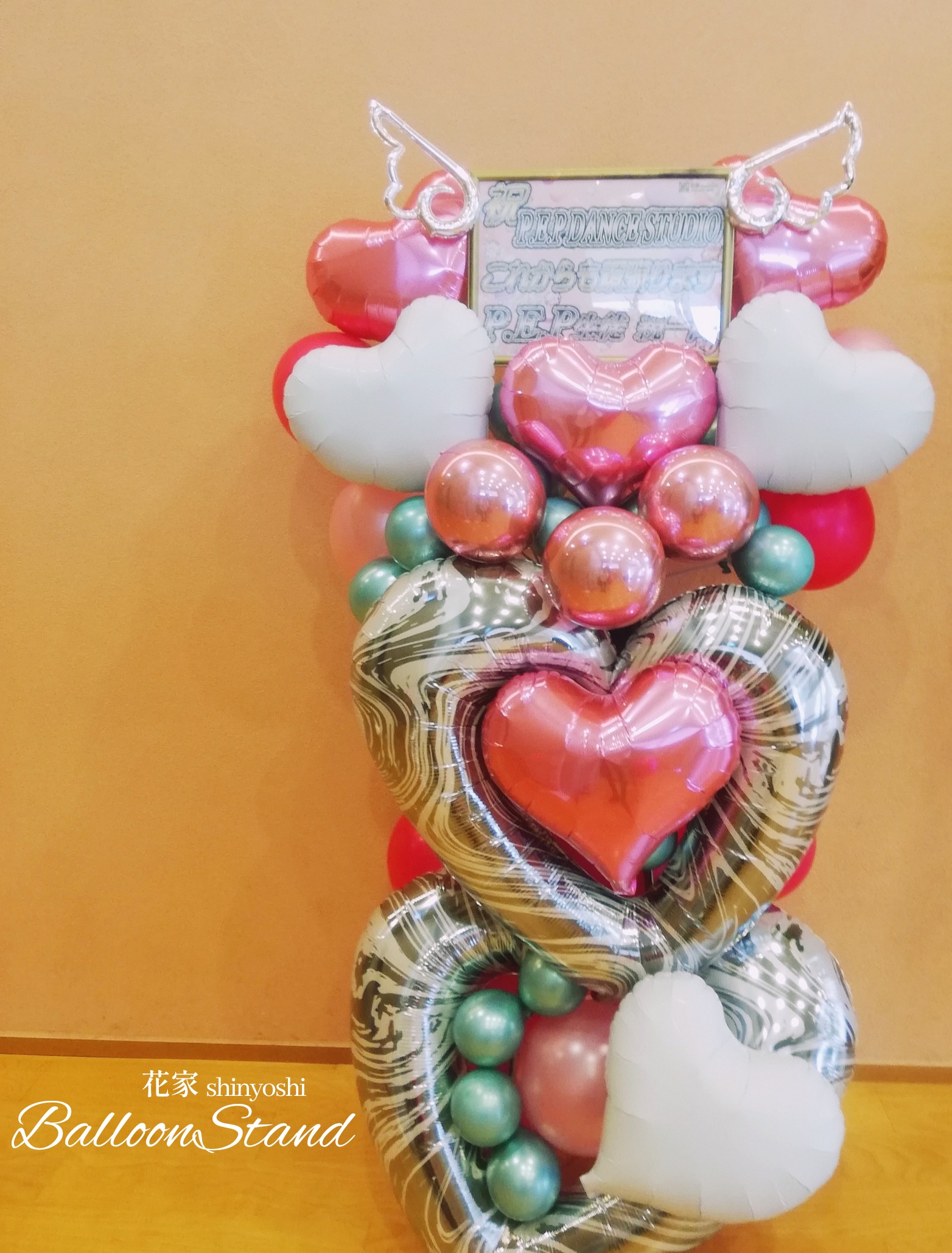バルーンスタンド ~フラワーミックス オーダーメイド~ ビックフラワーやストーンガーベラやダブルバルーンや天使のバルーンなど細かい所にまでこだわったスタンド。 お客様の想い+当店フローリストの提案をミックスして創作致します。 お客様の想いをどんどん膨らませ、完全なバルーンスタンドを御提案させて頂きます。 お気軽にお問い合わせ下さいませ。